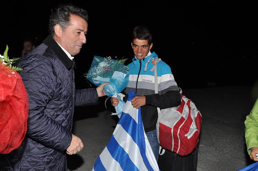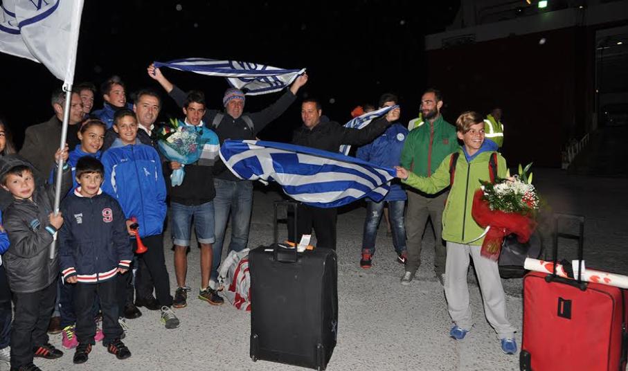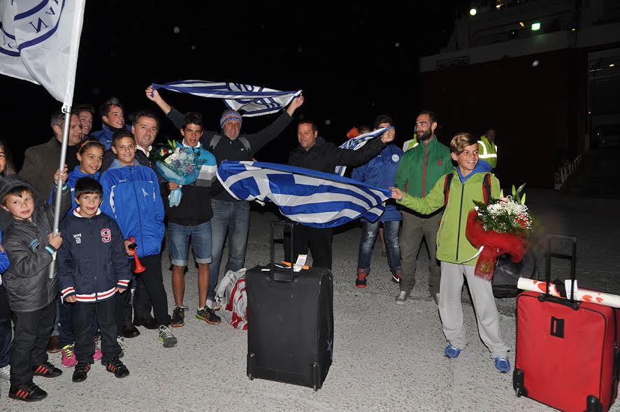 Οι δυο αθλητές του Ναυτικού Ομίλου Άνδρου έφθασαν λίγο μετά τις 8 το βράδυ της Κυριακής στο λιμάνι του Γαυρίου, όπου –παρά το τσουχτερό κρύο- τους υποδέχτηκαν ο Δήμαρχος, Θεοδόσης Σουσούδης, ο Αντιδήμαρχος Κορθίου Χρήστος (Τάκης) Βουραζέρης, η οικογένειά τους (πατέρας – μητέρα και τα οκτώ αδέλφια τους!), η Διευθύντρια του Δημοτικού Σχολείου Κορθίου κ. Μαρία Καπερώνη, αρκετοί φίλοι τους, καθώς και συναθλητές τους από τον Ναυτικό Όμιλο Άνδρου.