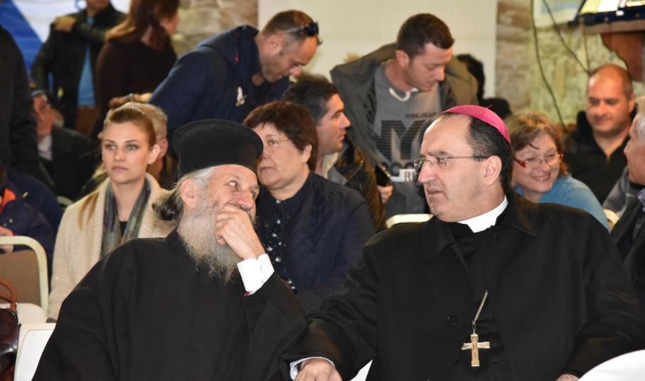 Το "παρών" στην εκδήλωση κοπής της πρωτοχρονιάτικης πίτας έδωσαν τόσο ο σεβασμιότατος Μητροπολίτης Σύρου Δωρόθεος Β', όσο και ο επίσκοπός της καθολικής εκκλησίας πατέρας Πέτρος Στεφάνου. Επίσης στην εκδήλωση έδωσαν τοπικοί φορείς του τόπου, οι δύο αντιπεριφερειάρχες Κυκλάδων, Λεονταρίτης και Μαργαρίτης, αλλά και ο Λιμενάρχης Σύρου και ο διοικητής της σχολής του εμπορικού ναυτικού.