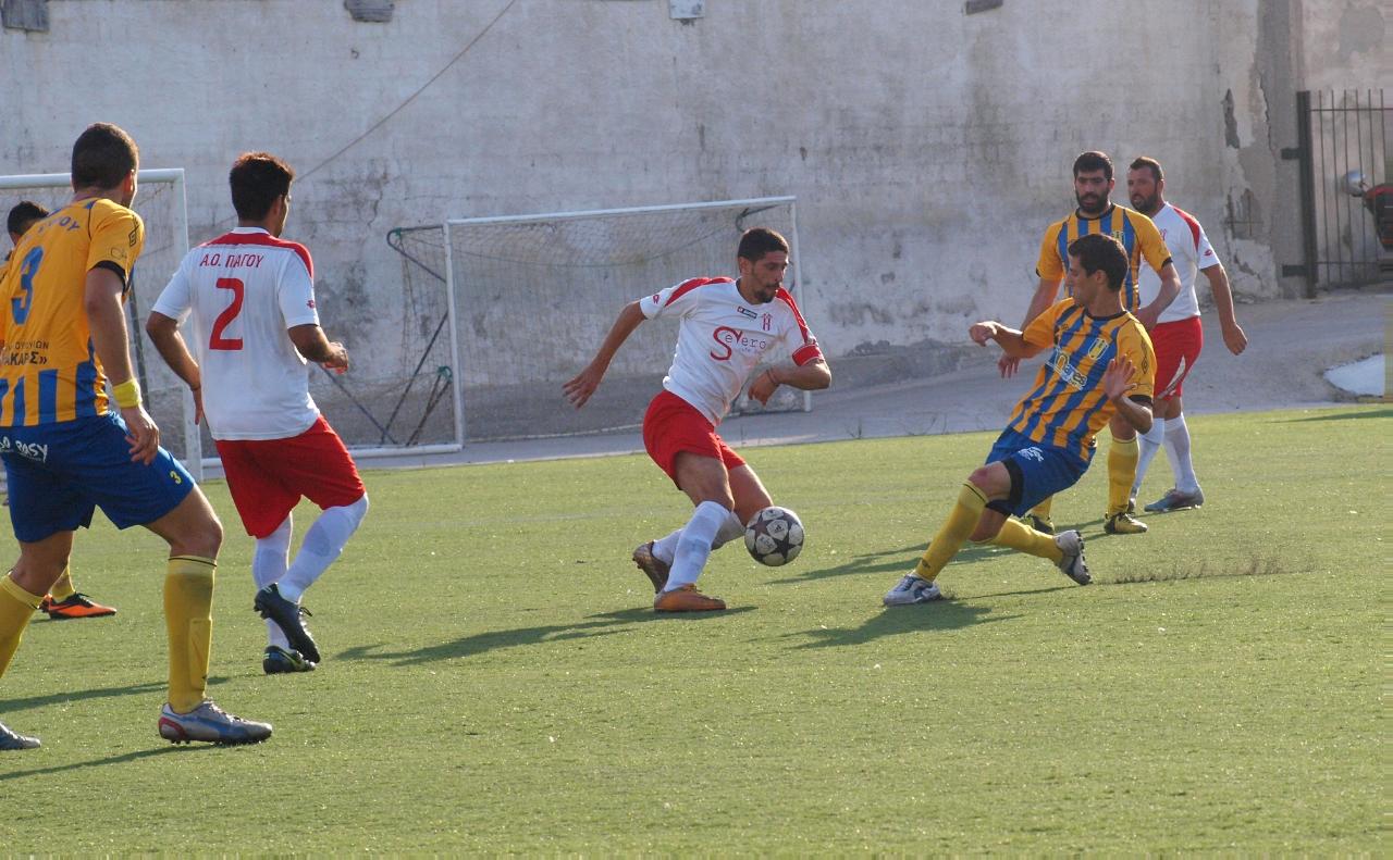 52' ο Σταματίου έπειτα το λάθος της άμυνας του Πάγου και συγκεκριμένα του Πρελορέντζου άνοιξε το σκορ για τον Α.Ο. Σύρου (1-0).