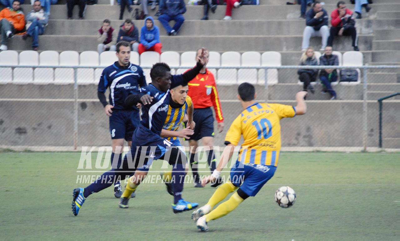 Το παιχνίδι μεταξύ του Α.Ο. Σύρου και της Άνω Μεράς μπορεί να είχε το ίδιο αποτέλεσμα, όμως σε καμιά περίπτωση δεν θύμιζε το ματς που είχε διεξαχθεί μία βδομάδα νωρίτερα για το πρωτάθλημα των Κυκλάδων. Οι δύο ομάδες έπαιξαν με σκοπιμότητες καθώς κοιτούσαν πρώτα να διατηρήσουν ανέπαφη της εστία τους και στη συνέχεια να βγουν μπροστά. Για κόμη μία φορά η Συριανή ομάδα προβλημάτισε με την απόδοσή της στο πρώτο ημίχρονο, αφού δεν δημιούργησε ούτε μία ευκαιρία σόλο το σαρανταπεντάλεπτο.