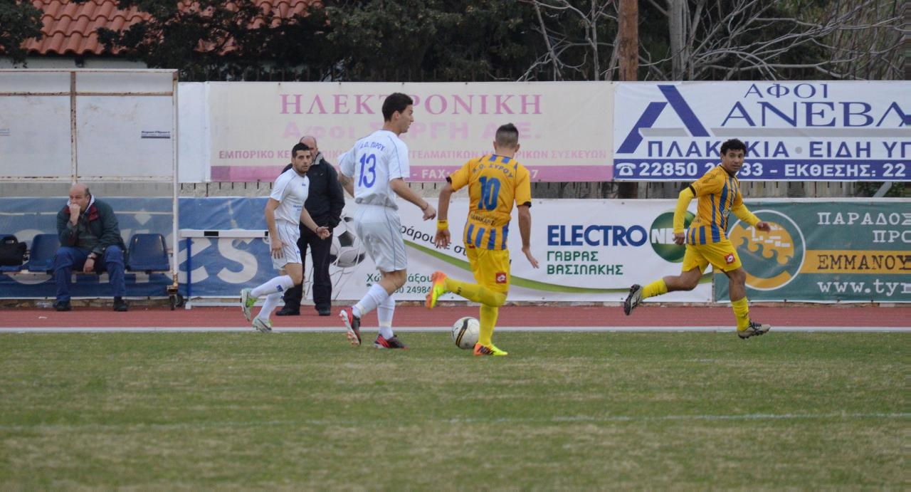 Ο τεχνικός της ομάδας της Σύρου παρακολούθησε την αναμέτρηση από την εξέδρα του γηπέδου αφού είχε τιμωρηθεί από την Πειθαρχική επιτροπή, για ένα περιστατικό που είχε συμβεί στο πρωτάθλημα των νέων με τον Α.Ο. Πάρου.