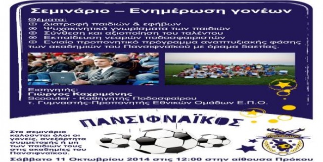 Σεμινάριο-ενημέρωση διοργανώνει ο Πανσιφναϊκός, για τις ακαδημίες του Πανσιφναϊκού.