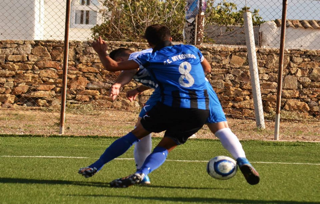 Ο Βλαχόπουλος από πλεονεκτική θέση άνοιξε το σκορ για την ομάδα της Μυκόνου στο 16'. Τρία λεπτά αργότερα οι γηπεδούχοι μετά το λάθος του Βαλαμούτη και την ανατροπή του Μ. Γλυνού εντός της μεγάλης περιοχής είχαν την ευκαιρία να φέρουν το ματς στα ίσα. Ο Α. Γλυνός από τα έντεκα βήματα δεν έχασε την ευκαιρία και ισοφάρισε σε 1-1, στο 19'.