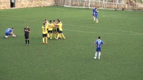 22' ο Τερόλλη με κεφαλιά έστειλε τη μπάλα προς της εστία του Καμολίνου, όμως ο τερματοφύλακας των φιλοξενούμενων δεν υπολόγισε σωστά την τροχιά της μπάλας και ο Ραμπαβίλας με το σώμα την έσπρωξε εντός εστίας και με τον τρόπο αυτόν οι Συριανοί άνοιξαν το σκορ (1-0).
