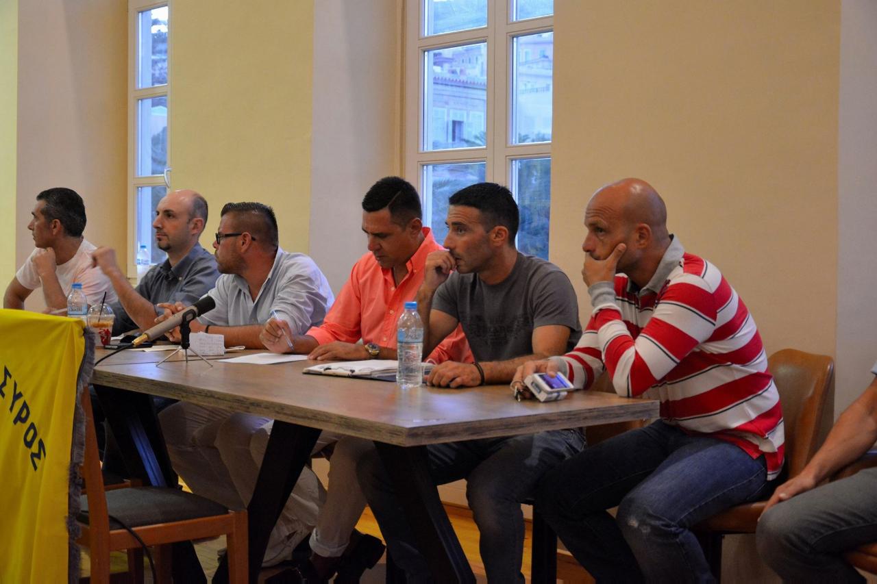 Κοντά μας έχουμε και τον Γενικό Γραμματέα του Πάγου, ο οποίος είναι ένας αξιόλογος κύριος και θέλουμε κάποια στιγμή να βρεθεί μια φόρμουλα να έχουμε μεταξύ μας κάτι καλό ώστε να μην χρειάζεται να κάνουμε τόσες πολλές μεταγραφές και να δαπανούμε πολλά χρήματα. Αν κάτσουμε όλα τα σωματεία της Σύρου σε ένα τραπέζι και υπάρχει καλή θέληση πιστεύω ότι θα τα βρούμε, γιατί δεν έχουμε τίποτα να χωρίσουμε.
