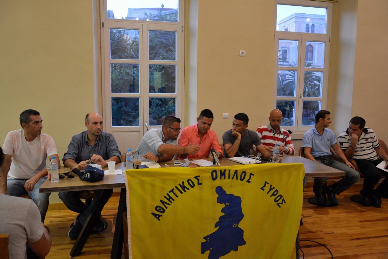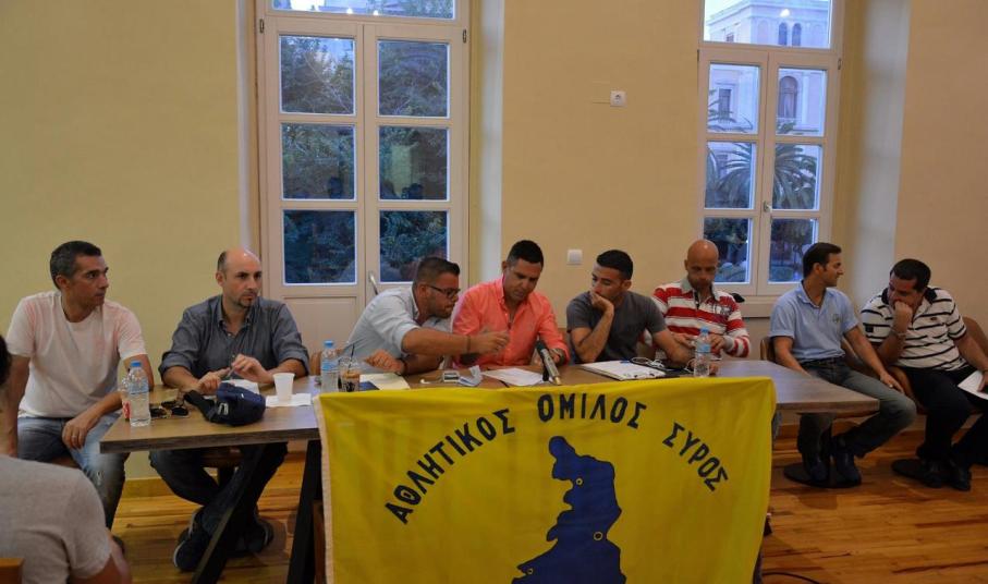 Την Κυριακή το βράδυ πραγματοποιήθηκε η συνέντευξη Τύπου του Α.Ο. Σύρου, παρουσία παικτών, ΜΜΕ, μελών της διοίκησης και φίλων της ομάδας. Κατά τη διάρκεια της συνέντευξη Τύπου ακούστηκαν πολλά και ενδιαφέροντα πράγματα από τον τεχνικό διευθυντή Γιάννη Ζαχαρίου, τον προπονητή Μάκη Βαρθαλίτη, αλλά και τον πρόεδρο της ομάδας Γιώργο Φώσκολο.