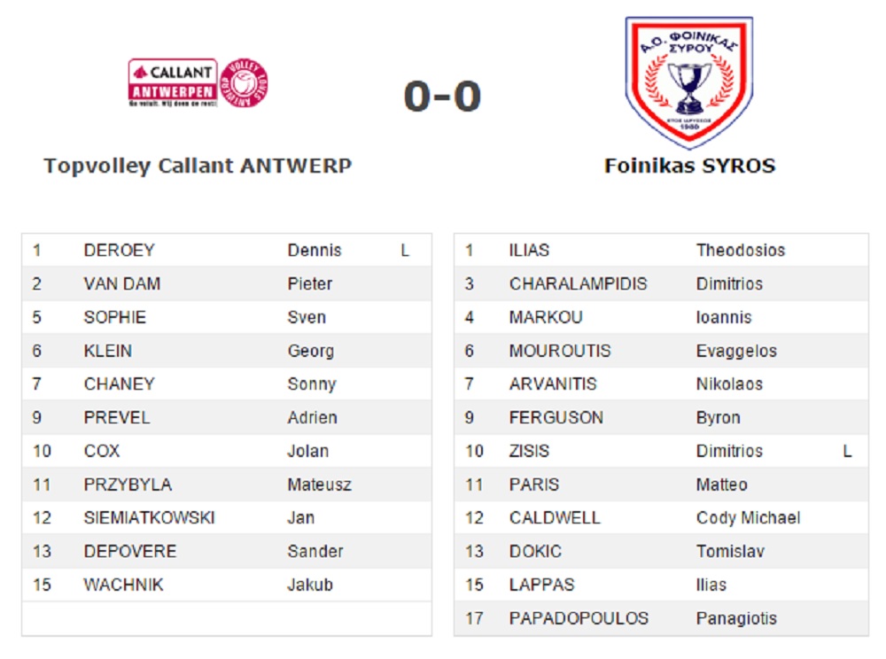 Ξεκινά σε λίγα λεπτά η ευρωπαϊκή αναμέτρηση του Φοίνικα Σύρου με την Βελγική Topvolley Callant ANTWERP.