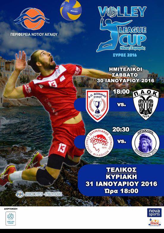 “Το Σάββατο 23 Ιανουαρίου 2016 ξεκινάει η διάθεση των εισιτηρίων της νέας μεγάλης αθλητικής διοργάνωσης‘’VOLLEY LEAGUE CUP’’ (Κύπελλο Ελλάδος Επαγγελματικών Ομάδων) που διεξάγεται στο νησί μας στις 30 & 31 Ιανουαρίου 2016.