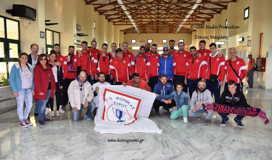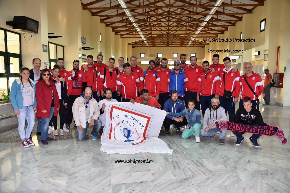 Η ομάδα του Φοίνικα Σύρου αναχώρησε την Τετάρτη το πρωί από το αεροδρόμιο της Σύρου με αρχικό προορισμό το Ε΄. Βενιζέλος, από εκεί με νέα πτήση θα μεταβεί στη Θεσσαλονίκη, όμως στο αεροδρόμιο της Σύρου τους περίμενε μία ευχάριστη έκπληξη, αφού μέλη της λέσχης φίλων Φοίνικα, βρέθηκε νωρίς το πρωί στην αίθουσα αναμονής του αεροδρομίου για να ενισχύσει και να εμψυχώσεις την αποστολή του “Πειρατικού”. Κανείς δεν γνώριζε την κίνηση των μελών της λέσχης και όταν οι παίκτες τους αντίκρισαν ένιωσαν μεγάλη χαρά και ικανοποίηση. Αυτό άλλωστε φάνηκε και στις μετέπειτα δηλώσεις που έκαναν, καθώς υποσχέθηκαν πως θα δώσουν το εκατό τις εκατό των δυνατοτήτων τους για να φτάσουν στη νίκη και την ισοφάριση της σειράς των τελικών. Από εκεί και πέρα η αποστολή της ομάδας αν και είχε ξυπνήσει νωρίς ήταν ευδιάθετη και με καλή ψυχολογία και παράλληλα υπήρχε πίστη για νίκη στη Θεσσαλονίκη. Ο Φοίνικας μετά την επικράτησή του στην πρωτεύουσα των Κυκλάδων μείωσε σε 1-2 και μπήκε και πάλι στο... κόλπο του τίτλου. Στη Θεσσαλονίκη θέλει μόνο νίκη ώστε να επιστρέψει στο νησί για τον πέμπτο τελικό. Αγωνιστικά προβλήματα δεν υπάρχουν, ο Ντόκιτς ο οποίος είχε κάποια μικροπροβλήματα αναμένεται να δώσει κανονικά το παρών και να βοηθήσει κι αυτός με τη σειρά του τον Φοίνικα για να φτάσει στο 2-2.