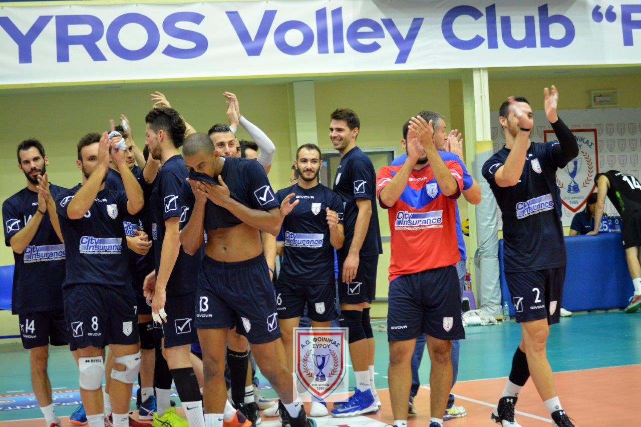 ΦΟΙΝΙΚΑΣ ΣΥΡΟΥ (Νίκολιτς): Πάρις 5 (1/1 επ., 3 άσους, 1 μπλοκ) Μρντακ 16 (12/23 επ., 1 άσος, 3 μπλοκ), Ρεϊνάλντο 12 (9/14 επ., 3 άσους, 60% υπ.-27% αρ.), Σούρδι 10 (8/10 επ., 2 μπλοκ, 64% υπ.-64% αρ.), Παπαδόπουλος 3 (3 μπλοκ), Όβερμαν 4 (3/4 επ., 1 άσος), Ζήσης (λ-71% υπ.-57% αρ.), Χήρας 3 (2/3 επ., 1 μπλοκ), Εφραιμίδης (0/3 επ.).