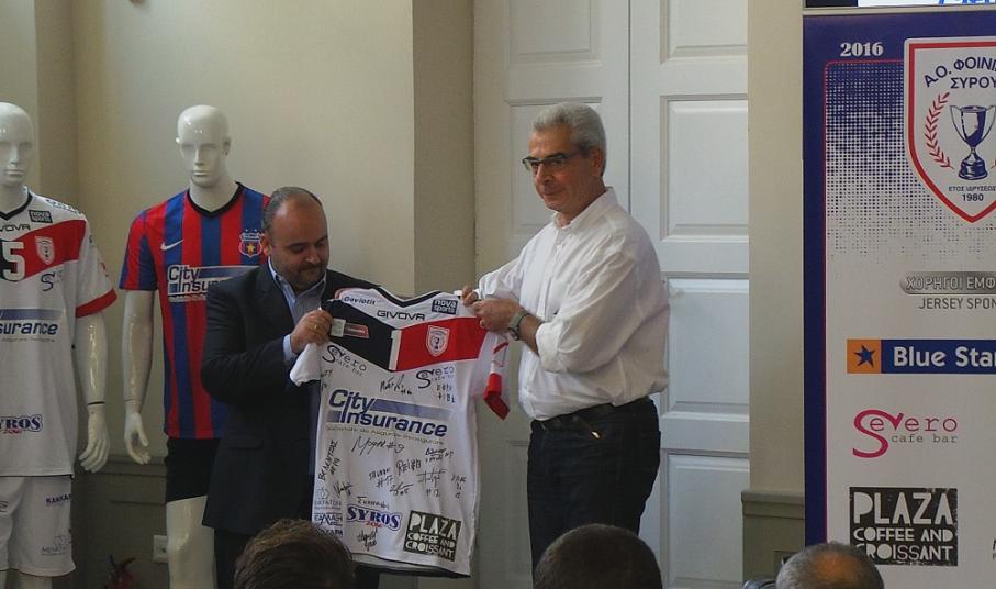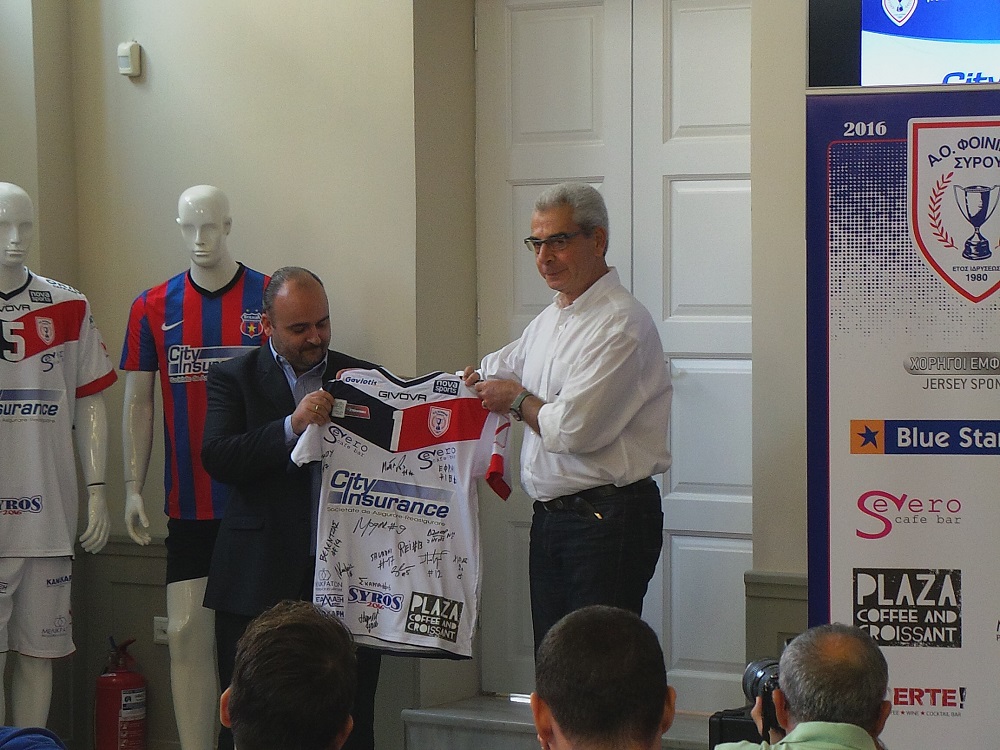 Παίκτες και χορηγούς παρουσίασε η διοίκηση της ομάδας του Φοίνικα Σύρου, σε εκδήλωση που πραγματοποιήθηκε στην αίθουσα συνεδριάσεων του Επιμελητηρίου Κυκλάδων. Στην εκδήλωση έδωσαν δυναμικό παρών οι επιχειρήσεις του νησιού που στηρίζουν την φετινή προσπάθεια της Σύρου, εκπρόσωπος του μέγα χορηγού, αλλά και οι τοπικοί φορείς του νησιού. Είναι γεγονός πως ο Φοίνικας πλέον κινείται σε άλλα... επίπεδα, αφού μετά από χρόνια παρουσίας στα σαλόνια της Volley League, μία μεγάλη εταιρία τον επιλέγει και τον στηρίζει έμπρακτα. Η σεζόν – αν και αγωνιστικά δεν έχει ξεκινήσει ακόμη – έχει μπει με το... δεξί αφού όλο το νησί αποδεικνύει έμπρακτα το σύνθημα... “Μία ομάδα ένα νησί”.