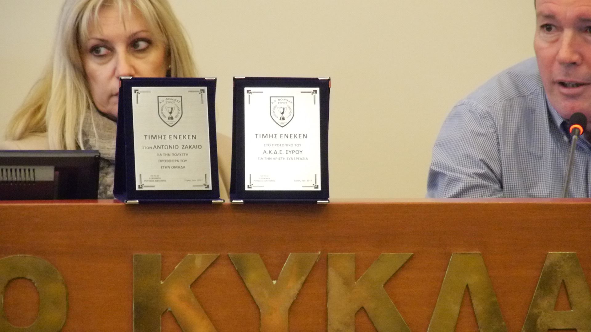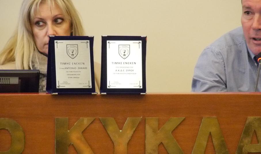 Τέλος, ευχές απεύθυναν τόσο ο χωρικός αντιπεριφερειάρχης Κυκλάδων Γιώργος Λεονταρίτης, ο Δήμαρχος Σύρου – Ερμούπολης Γιώργος Μαραγκός, ο τεχνικός της ομάδας Ντούσκο Νίκολιτς και ο πρόεδρος του Επιμελητηρίου Γιάννης Ρούσσος.