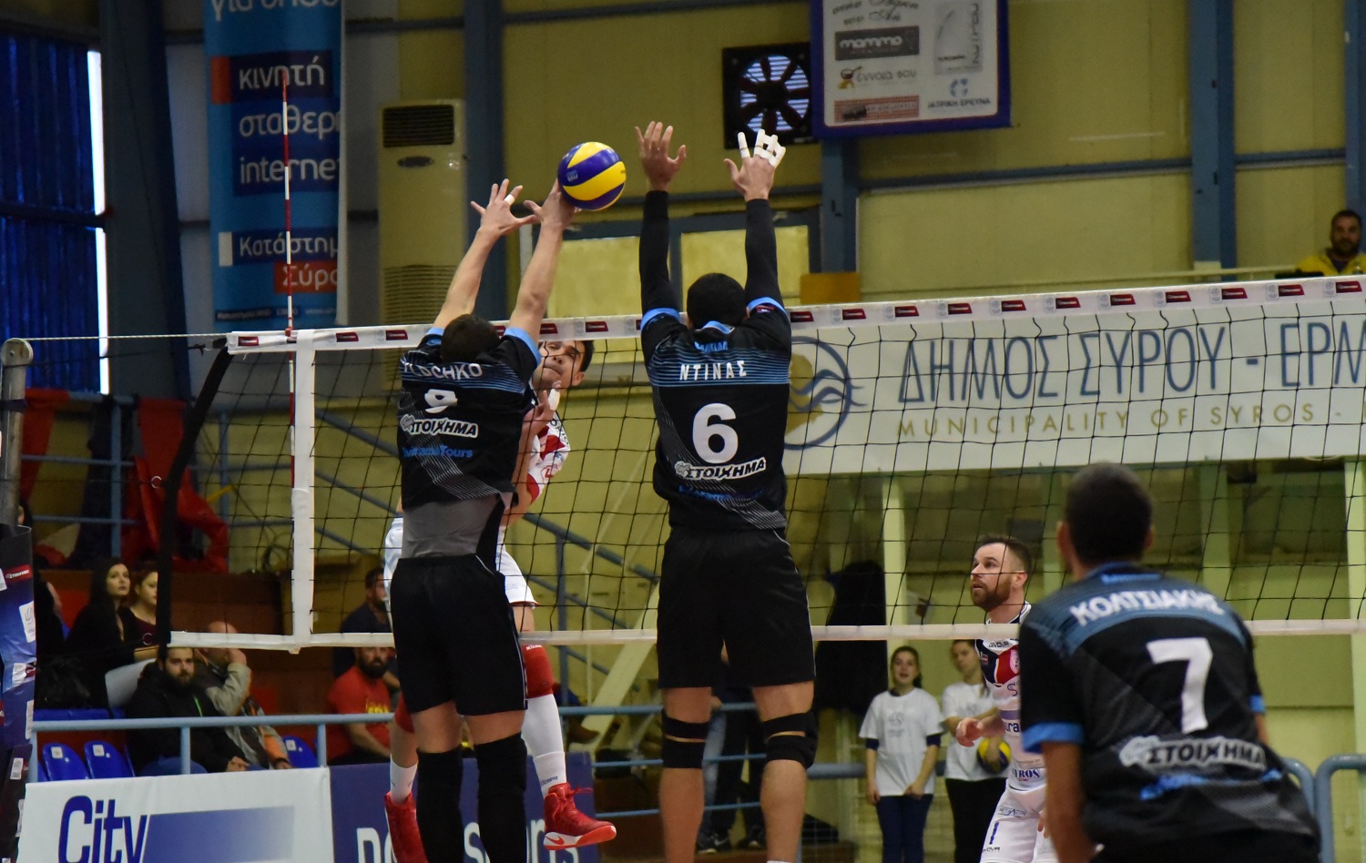Επιστροφή στις νίκες για την ομάδα της Σύρου που επικράτησε του Ηρακλή Χαλκίδας με 3-0 σετ 25-19, 25-12, 25-22, στο πλαίσιο της 20ης αγωνιστικής για την Volley League. Ο Μρντακ επέστρεψε στην αγωνιστική δράση μετά από μία αγωνιστική αποχής, όμως το… βάρος της επίθεσης το σήκωσε ο Βραζιλιάνος που σημείωσε συνολικά 20 πόντους με πολύ καλή αγωνιστική παρουσία. Ο Εφραιμίδης ήταν πολύ καλός στην υποδοχή, αφού ο Δημήτρης Ζήσης υπέρβαλε εαυτό για να καταφέρει να αγωνισθεί μιας και είχε υψηλό πυρετό.