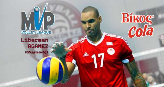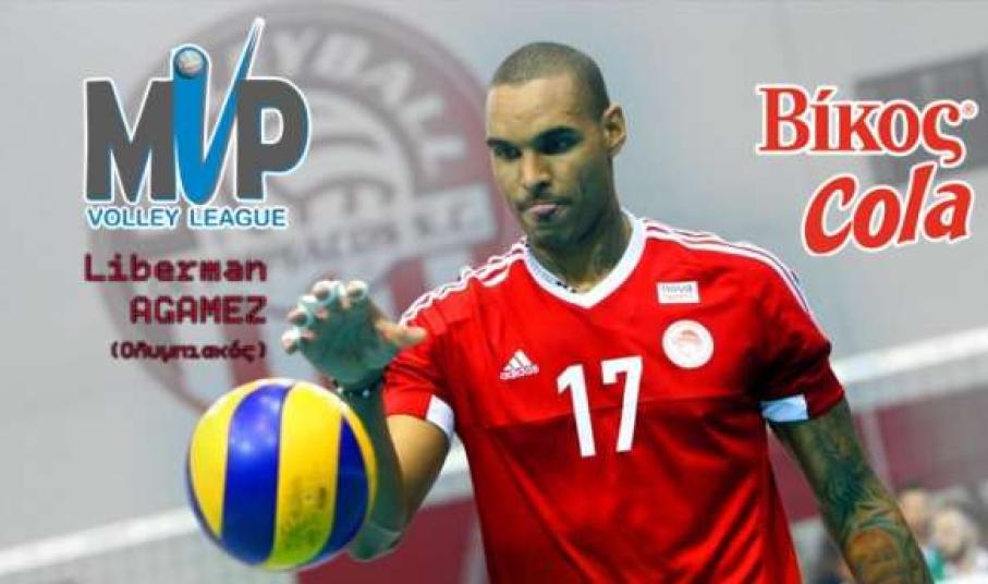 Ο διαγώνιος του Ολυμπιακού Λίμπερμαν Αγκάμεζ αναδείχτηκε πολυτιμότερος αθλητής - MVP Βίκος Cola της ημιτελικής φάσης των πλέι οφ (θέσεις 1-4) στο πρωτάθλημα Volley League «Πάμε Στοίχημα» 2016-17.