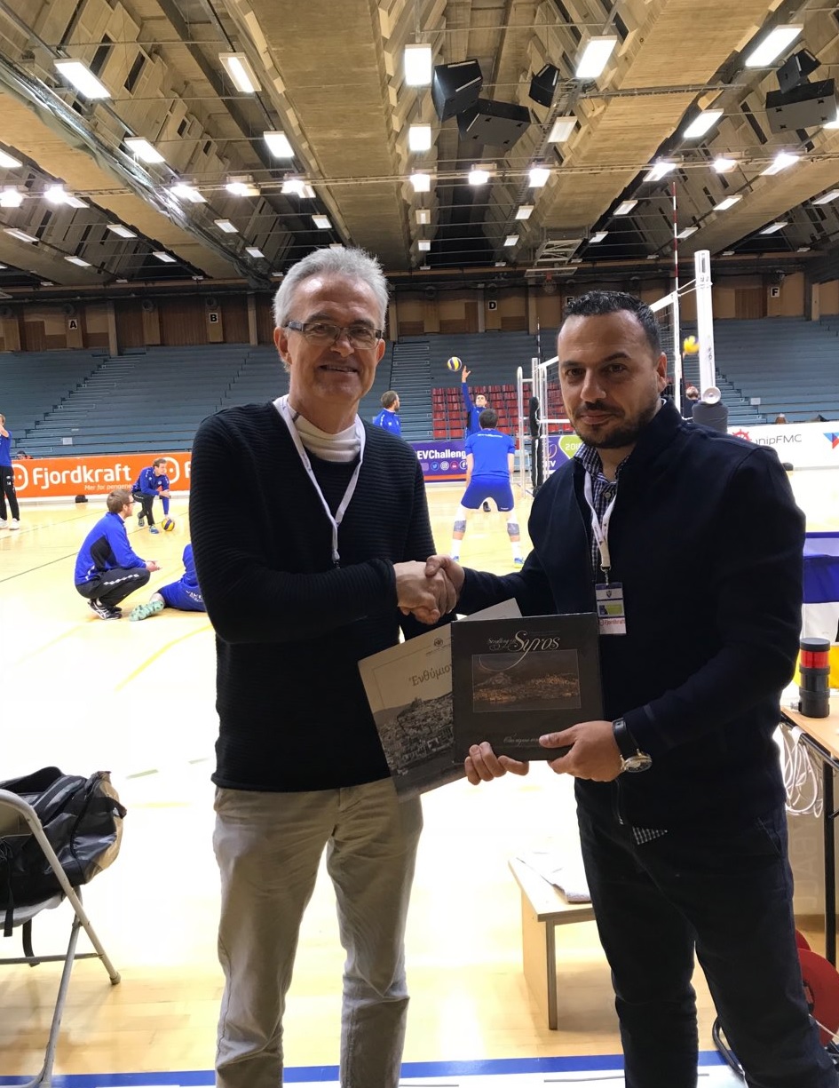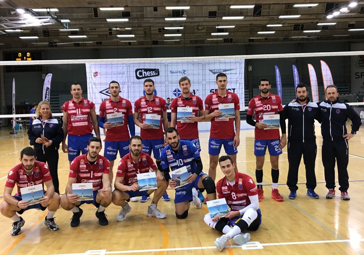 Στο πρόσφατο ταξίδι  στο Μπέργκεν της Νορβηγίας  , στα πλαίσια της συμμετοχής  της στην διοργάνωση  του Challenge Cup  CEV, πέραν της πολύ καλής εμφάνισης και της κατάκτησης της νίκης και των πολύτιμων 3 βαθμών που την χρίζουν φαβορί για την πρόκριση στον επόμενο γύρο,  μοίρασε έντυπο διαφημιστικό υλικό στους παίκτες και φιλάθλους  των αντιπάλων, αλλά και πολυτελή τόμο για την Σύρο , στην διοίκηση και στο προπονητικό προσωπικό της TIF VIKING.