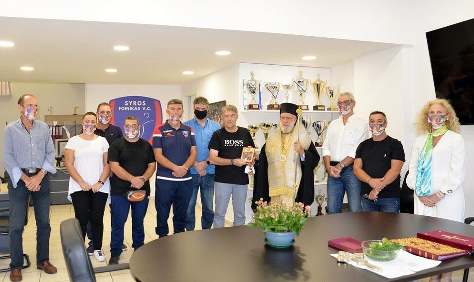 Αμέσως μετά, ο Σεβασμιότατος πήγε και στο κλειστό Δ. Βικέλας (στην προπόνηση της ομάδας), όπου δώρισε στους αθλητές ένα ιερό κομποσκοίνι.