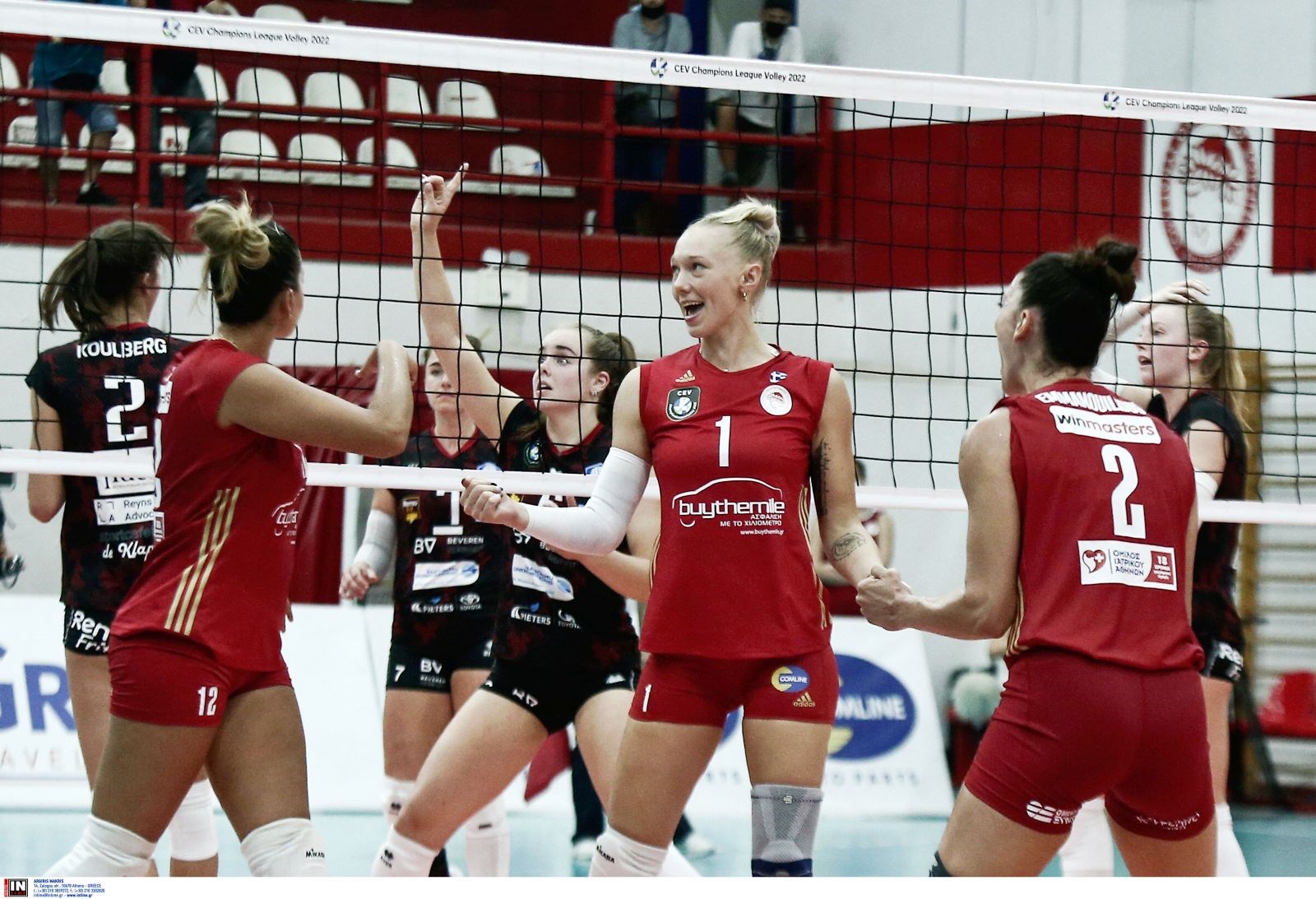Ολυμπιακός Σ.Φ.Π. (Φερέρ Κουτίνο): Γιώτα 7 (3/9 επ., 2 άσσοι, 2 μπλοκ), Εμμανουηλίδου 6 (3/7 επ., 1 άσσος, 2 μπλοκ), Σάλας 6 (6/19 επ., 33% υπ. - 25% άριστες), Μαριάνα Κόστα 13 (11/25 επ., 1 άσσος, 1 μπλοκ, 40% υπ. - 10% άριστες), Χριστοδούλου 5 (2/4 επ., 3 μπλοκ), Χίπε 3 (3/22 επ.) / Τοτσίδου (λ, 42% υπ. - 29% άριστες), Κακουράτου (λ, 50% υπ. - 50% άριστες), Ζιώγα 11 (10/17 επ., 1 μπλοκ), Μιλεντίγιεβιτς, Γενιτσαρίδη 12 (9/22 επ., 1 άσσος, 2 μπλοκ, 57% υπ. - 43% άριστες), Κελεσίδη 1 (1/2 επ.), Ξανθοπούλου.