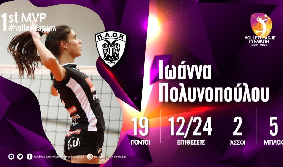 Η Ιωάννα Πολυνοπούλου του Π.Α.Ο.Κ. είναι η MVP της 1ης αγωνιστικής του πρωταθλήματος της Volley League Γυναικών 2021-2022.