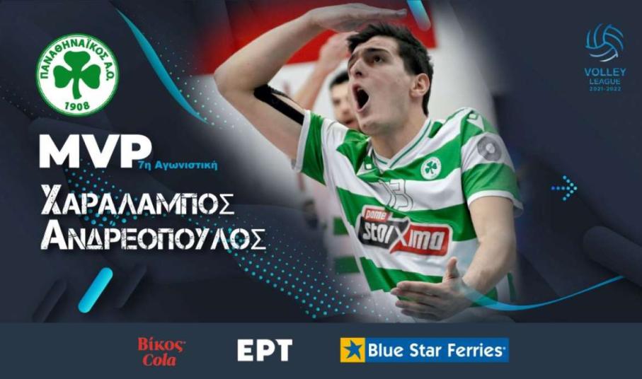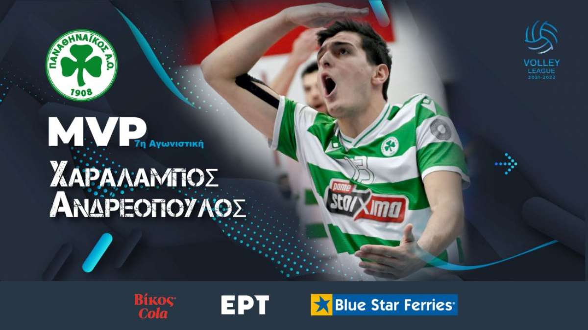 Ο ακραίος του Παναθηναϊκού Χαράλαμπος Ανδρεόπουλος αναδείχτηκε MVP Βίκος Cola στην 7η αγωνιστική της Α΄ φάσης του πρωταθλήματος Volley League 2021-22.