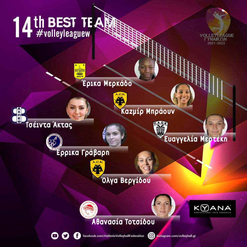 Διαγώνια: Έρικα Μερκάδο (Άρης) 25π. (19/38 επ., 1 άσσος, 5 μπλοκ).