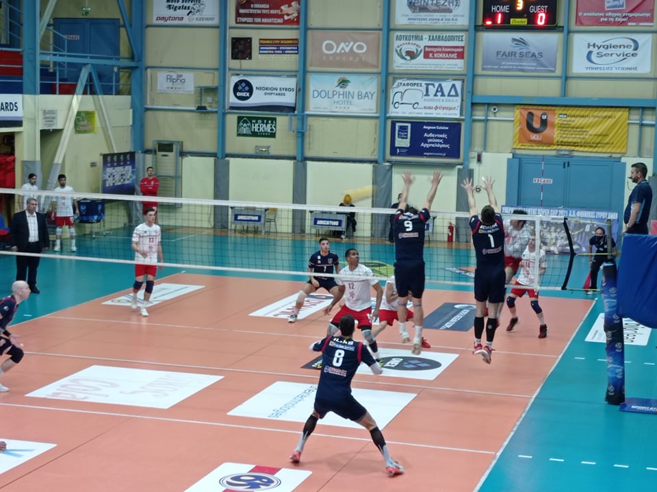 Τέλος, το τρίτο σετ για αρκετά μεγάλο διάστημα είχε μία άγρια ομορφιά, αφού οι γηπεδούχοι είχαν χαλαρώσει μετά το 25-9 στο δεύτερο. Οι φιλοξενούμενοι εκμεταλλευόμενοι αυτή τη χαλάρωση ήταν μπροστά μέχρι το 15-17. Κάπου εκεί οι Συριανοί πάτησαν γκάζι και με αιχμή του δόρατος τον Καπετανίδη, γύρισαν την εις βάρος τους κατάσταση κι έφτασαν στην κατάκτηση του σετ με 25-20.