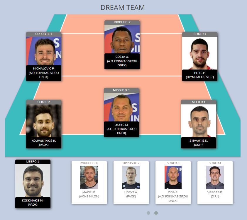 Στην Dream Team μάλιστα της πρώτης φάσης, είναι τρεις οι βασικοί παίκτες του Φοίνικα Σύρου ONEX που διακρίθηκαν, οι προαναφερθέντες Τζούριτς και Μιχάλοβιτς, καθώς και ο Ντέιβιντ Κόστα, κάτι που δείχνει ότι το κέντρο του Φοίνικα αποτελεί αδιαμφισβήτητα το δυνατό “χαρτί” του τη φετινή χρονιά.