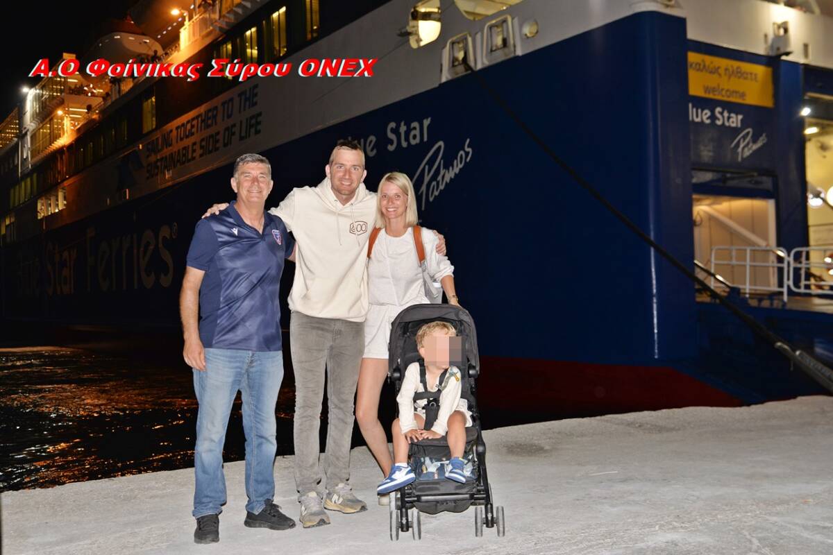 Ο Δημήτρης Χαραλαμπίδης έφτασε στο λιμάνι της Ερμούπολης με το Blue Star Paros, ενώ λίγες ώρες αργότερα με το Blue Star Patmos έφτασε ο Βέλγος ακραίος, Κέβιν Κλίνκενμπεργκ.