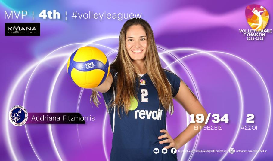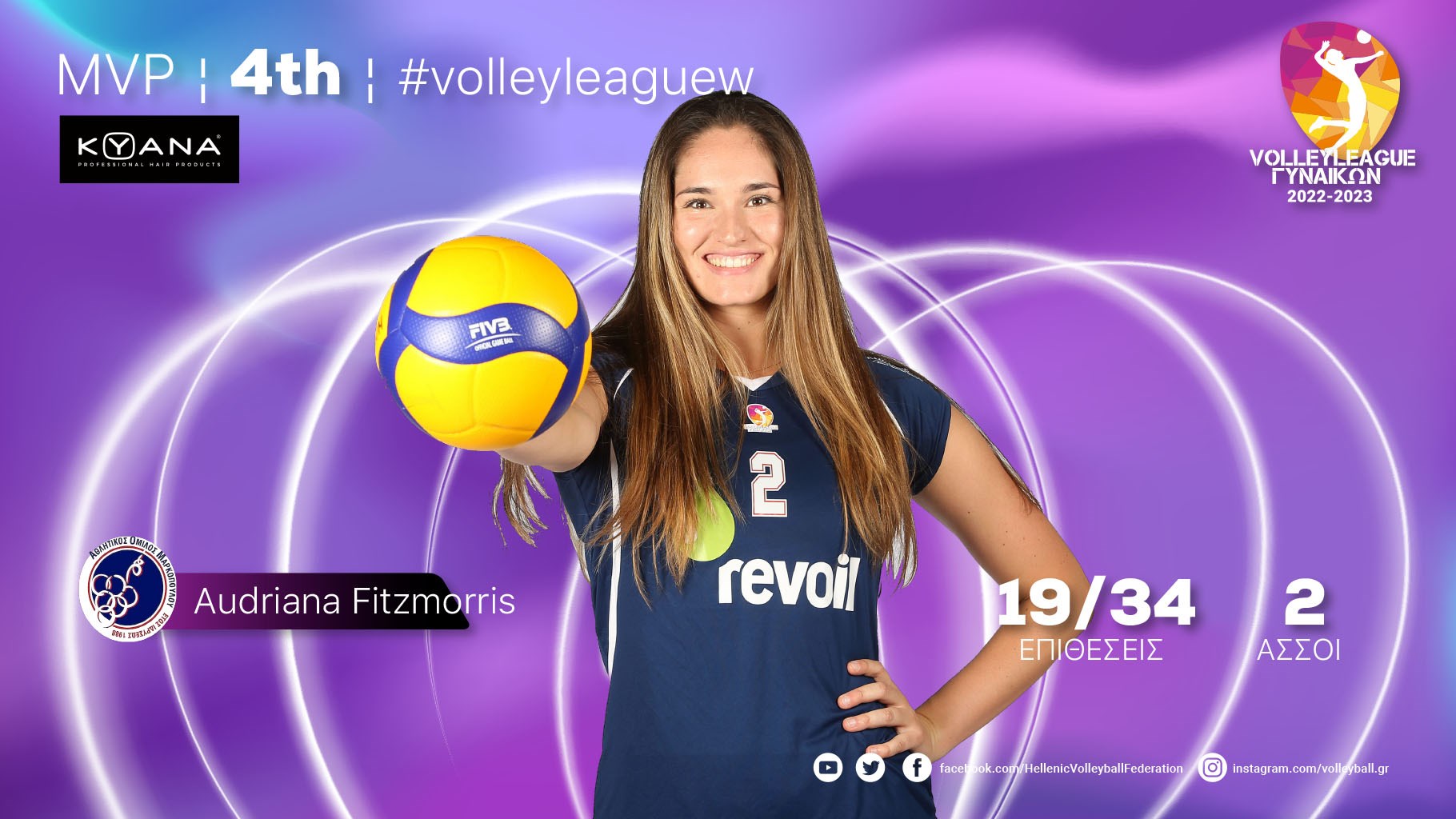 Η Οντριάνα Φιτζμόρις (Audriana Fitzmorris) του ΑΟ Μαρκοπούλου Revoil είναι η ΚΥΑΝΑ MVP της 4ης αγωνιστικής του πρωταθλήματος της Volley League Γυναικών 2022-2023.