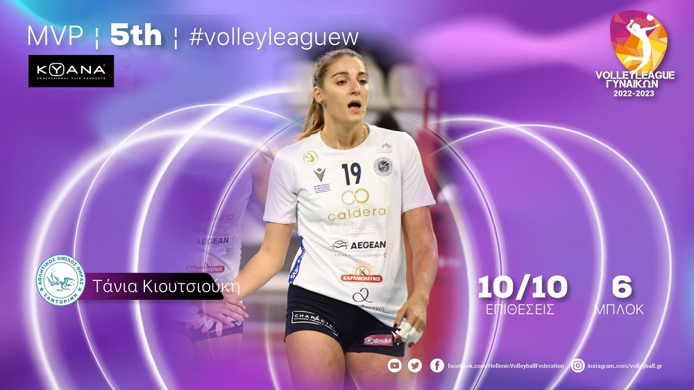 Η Τάνια Κιουτσιούκη του ΑΟ Θήρας είναι η ΚΥΑΝΑ MVP της 5ης αγωνιστικής του πρωταθλήματος της Volley League Γυναικών 2022-2023.