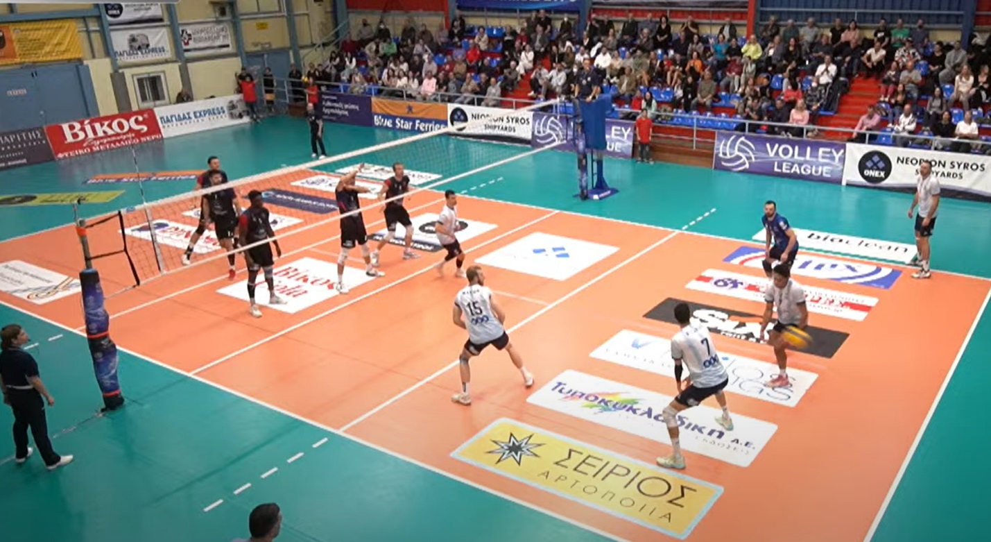 Ο Μιχάλοβιτς με ωραίο τρόπο τελείωσε τη φάση κάνοντας το 2-0 και στη συνέχεια ο Παπαλεξίου με άσσο διαμόρφωσε το 3-0, αναγκάζοντας τον τεχνικό της Κηφισιάς να καλέσει τάιμ άουτ. Ωραίο πλασέ του Κλίνκεμπεργκ το 4-1. Άσσος από τον Τζούριτς το 8-3. Ο Παπαλεξίου με πρώτο χρόνο το 9-4. Κακή υποδοχή από τους Συριανούς και ο Τσέιβερ μείωσε σε 9-7 και ο Δημήτρης Καζάζης κάλεσε τάιμ άουτ. Ο Φρομ στην κόντρα πήρε το μπλοκ άουτ για το 12-8. Ο Οκοσάνοβιτς μείωσε σε 12-9. Πρώτος χρόνος από τον Τζούριτς έπειτα από την ωραία πάσα του Ιερεζουέλο το 14-10. Άσσος από τον Οκοσάνοβιτς 14-13. Ο Τζούριτς με μπλοκ το 15-13. Ο Φρομ ήρθε από πίσω για το 17-15, διατηρώντας τη διαφορά στο +2. Στα ίσα το σετ (18-18) μετά από την επίθεση του Οκοσάνοβιτς και τους Συριανούς να μην μπορούν να βγάλουν άμυνα. Άσσος από τον Οκοσάνοβιτς για το 20-21 και το -5 (8-3) η Κηφισιά κατάφερε να προσπεράσει σε ένα κρίσιμο σημείο του σετ. Ο Φρομ πήρε το μπλοκ άουτ και μείωσε σε 21-23. Ο Οκοσάνοβιτς έπειτα από φάση διαρκείας έκανε το 22-24 και στη συνέχεια ο Μιχάλοβιτς μείωσε σε 23-24. Η Κηφισιά έκανε το 23-25 και προσπέρασε με 1-2 στα σετ. Οι φιλοξενούμενοι αυτομάτως απέκτησαν τον έναν από τους τρεις πόντους του αγώνα.