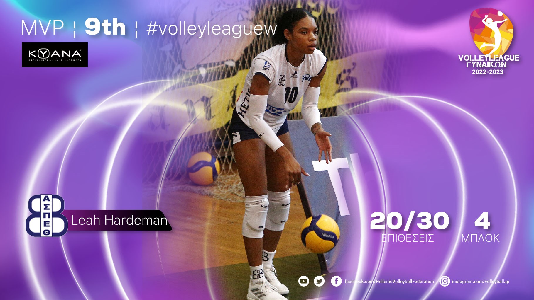 MVP της 9ης αγωνιστικής της Volley League Γυναικών η Λέα Χάρντεμαν