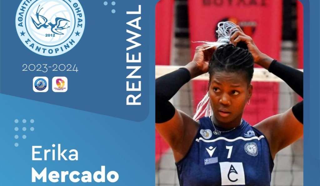 Η διοίκηση του Α.Ο. Θήρας βρίσκεται στην ευχάριστη θέση να ανακοινώσει την ανανέωση συνεργασίας του συλλόγου με την αθλήτρια Erika Mercado για την αγωνιστική σεζόν της Volley League γυναικών 2023-2024.