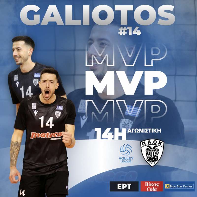 Ο διεθνής πασαδόρος, Μάρκος Γαλιώτος του ΠΑΟΚ αναδείχτηκε πολυτιμότερος αθλητής MVP Βίκος Cola της 14ης αγωνιστικής, στο πρωτάθλημα Volley League 2023-24.