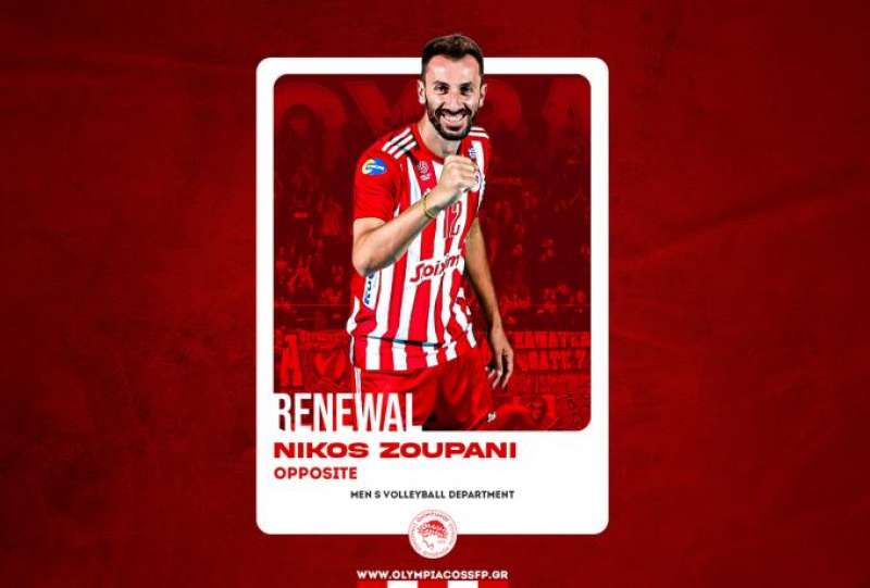 Ο Ολυμπιακός Σ.Φ.Π. ανακοινώνει την ανανέωση της συνεργασίας του με τον Νίκο Ζουπάνη. Ο διεθνής διαγώνιος υπέγραψε το νέο του συμβόλαιο και παραμένει στο ρόστερ της ομάδας βόλεϊ Ανδρών του συλλόγου." Ο Νίκος Ζουπάνη που κάνει αποθεραπεία δήλωσε  στην επίσημη ιστοσελίδα του Ολυμπιακού: