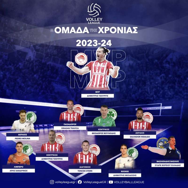 Πριν από την κλήρωση του πρωταθλήματος 2024-25 για τη Volley League, πραγματοποιήθηκαν οι βραβεύσεις των κορυφαίων της σεζόν 2024-25. Όπως ήταν γνωστό MVP της περυσινής σεζόν ήταν ο γνωστός σε όλους εδώ στη Σύρο, Δημήτρης Τζούριτς. Ο Έλληνας κεντρικός μετά το πέρασμά του από τον Φοίνικα, μετακόμισε για το μεγαλύτερο λιμάνι της χώρας, καθώς αγωνίσθηκε στην ομάδα του Ολυμπιακού. Από εκεί και πέρα οι ερυθρόλευκοι είχαν την… τιμητική τους, καθώς οι περισσότεροι που αγωνίστηκαν στον Ολυμπιακό ήταν στη λίστα με τους κορυφαίους της περσινής αγωνιστικής περιόδου.