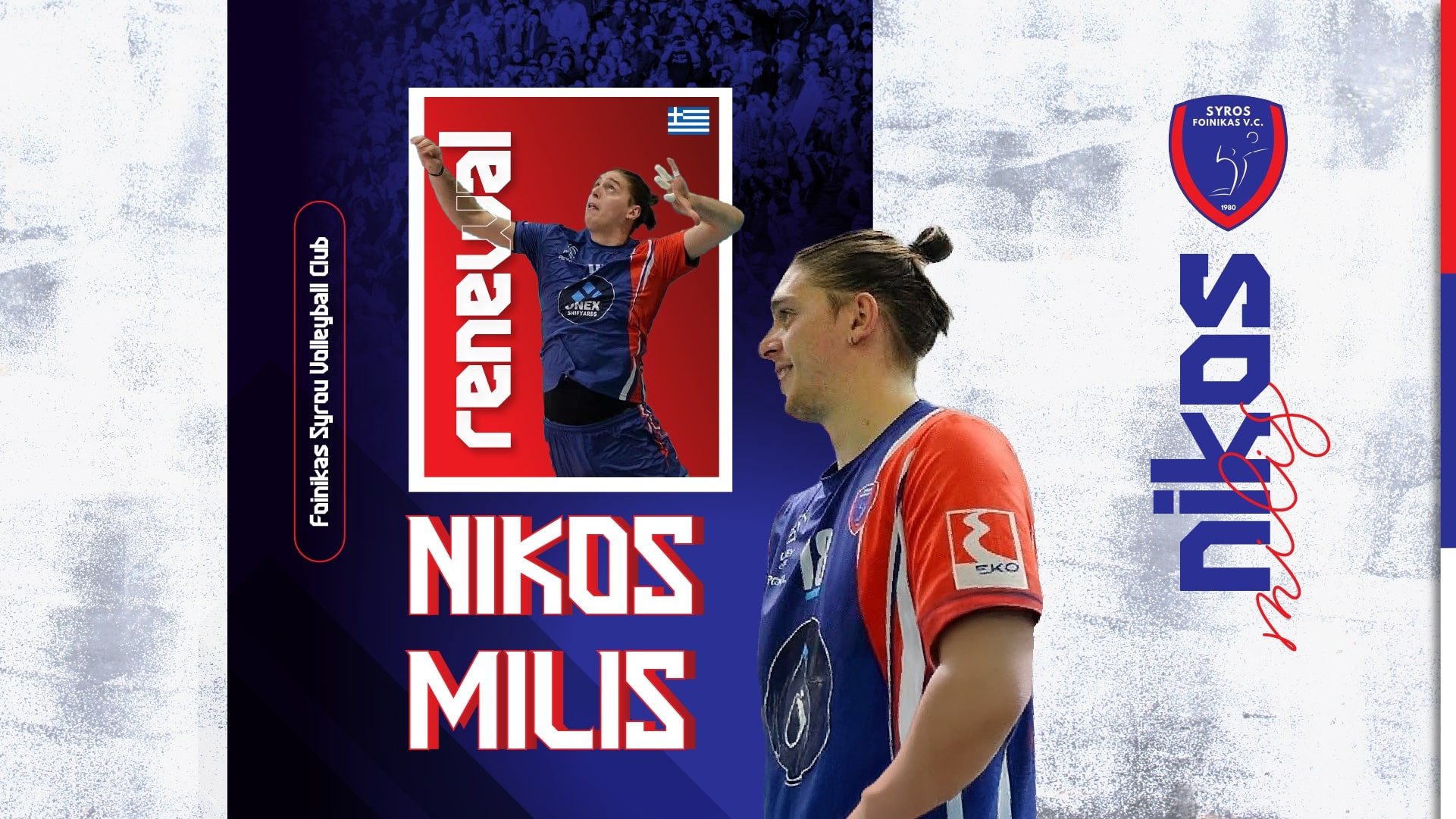 Τα χρώματα του Φοίνικα Σύρου θα συνεχίσει να φοράει ο Έλληνας διαγώνιος Νίκος Μήλης, ο οποίος τα βρήκε σε όλα με τη διοίκηση του “πειρατικού” και θα προσφέρει για ακόμη μία χρονιά τις υπηρεσίες του στο συγκρότημα του Θάνου Τερζή.