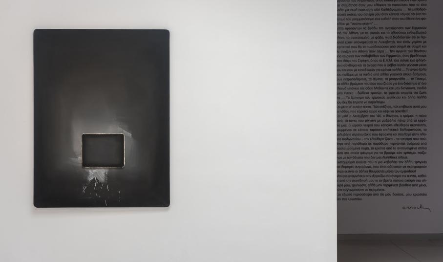 Στη δεύτερη αίθουσα, χώρος αυτοβιογραφικών κειμένων, προσθέσαμε το πορτραίτο της μητέρας του καλλιτέχνη, που ζωγράφισε το 1956.