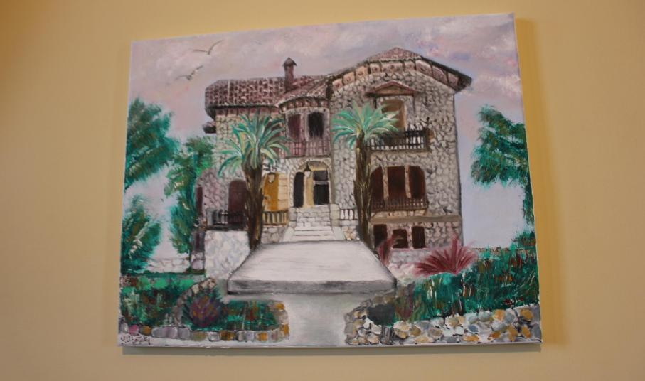 Από τα έργα της, δεν θα μπορούσε να λείψει και ένας πίνακας αφιερωμένος στην Έπαυλη Τσιροπινά στην Ποσειδωνία, η οποία την φιλοξένησε για μία ολόκληρη εβδομάδα. Καταλήγοντας, δήλωσε συγκινημένο από το ενδιαφέρον τόσο του Δήμου, όσο και των κατοίκων του νησιού, οι οποίοι έδειξαν ότι παρόλες τις δυσκολίες που περνάει η χώρα μας, η τέχνη θα μας αφορά και θα μας αγγίζει όλους.