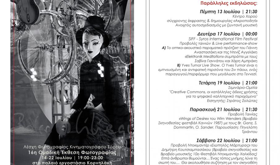 Η Λέσχη Φωτογραφίας - Κινηματογράφου Σύρου παρουσιάζει την 16η Ομαδική Έκθεση Φωτογραφίας των μελών της με θέμα «Φωτο-γραφήματα».
