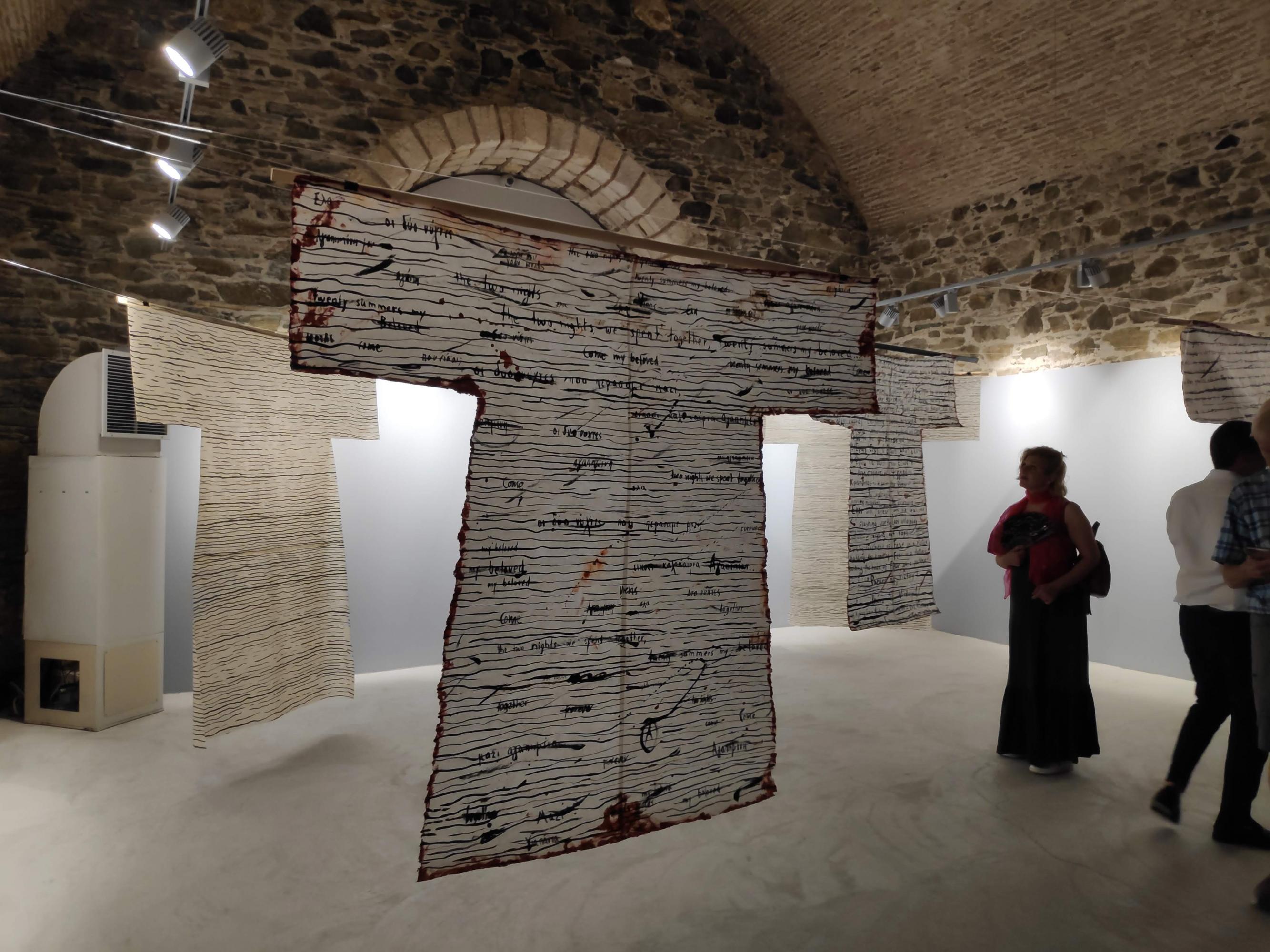 «Καλλιτέχνες όπως η Βένια Δημητρακοπούλου μας βοηθούν να καταλάβουμε τι γίνεται γύρω μας, να δούμε μπροστά, να βρούμε νέες λέξεις και να τις βάλουμε σε σειρά για να περιγράψουμε αυτό που βλέπουμε, να προσέχουμε αυτό που μετράει, να φανταζόμαστε και να βάζουμε νέους στόχους», σημείωσε στον χαιρετισμό του ο Ιταλός Πρέσβης κ. Marras.