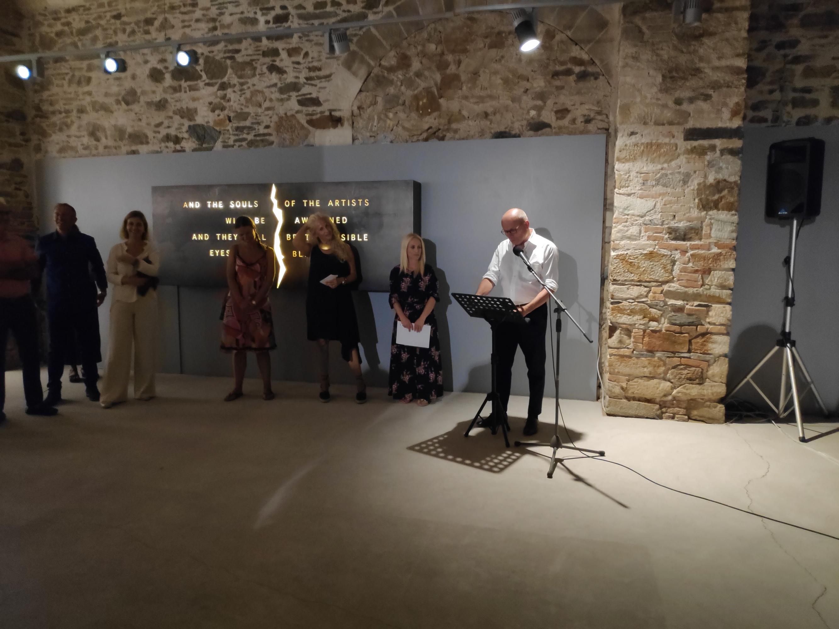 Παρουσία του Πρέσβη της Ιταλίας στην Ελλάδα, Luigi Marras και της Ιστορικού Τέχνης – Μουσειολόγου, Κατερίνας Κοσκινά πραγματοποιήθηκαν τα εγκαίνια της έκθεσης «Αρχέγονο Μέλλον» της διεθνούς φήμης εικαστικού, Βένιας Δημητρακοπούλου, στην Πινακοθήκη Κυκλάδων.