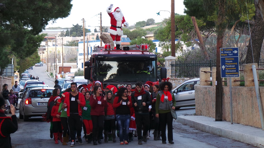 Η άφιξη του Άγιου Βασίλη πραγματοποιήθηκε με όχημα της Πυροσβεστικής Υπηρεσίας του νησιού, εντυπωσιάζοντας τους επισκέπτες που περίμεναν με ανυπομονησία τον συμπαθή γέροντα με την άσπρη γενειάδα και την κόκκινη στολή.