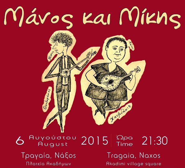 Ο Πολιτιστικός Σύλλογος Τραγαίας Νάξου προσκαλεί το κοινό στο μουσικό αφιέρωμα «Μάνος και Μίκης», που θα πραγματοποιηθεί αύριο στις 21:30 στην πλατεία Ακαδήμων.