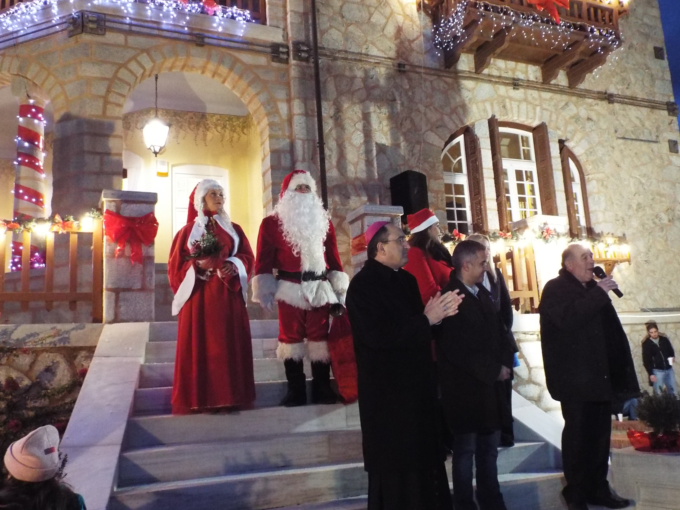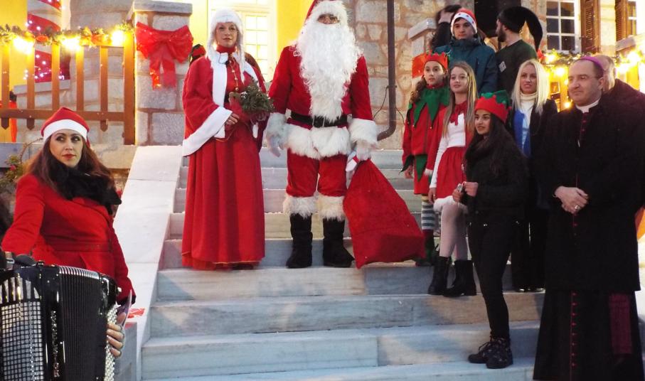 Στο σύντομο χαιρετισμό του, ο Καθολικός Επίσκοπος Σύρου Σεβ. π. Πέτρος Στεφάνου αναφέρθηκε στη σημασία της εορτής των Χριστουγέννων η οποία πλημμυρίζει τις καρδιές των ανθρώπων με χαρά και αγαλλίαση. «Αυτές τις ημέρες, εορτάζουμε ένα μοναδικό γεγονός. Ο Θεός γίνεται άνθρωπος για να μας στηρίζει στη ζωή και να μας δίνει δύναμη» τόνισε, ευχόμενος σε όλους «καλή χρονιά».