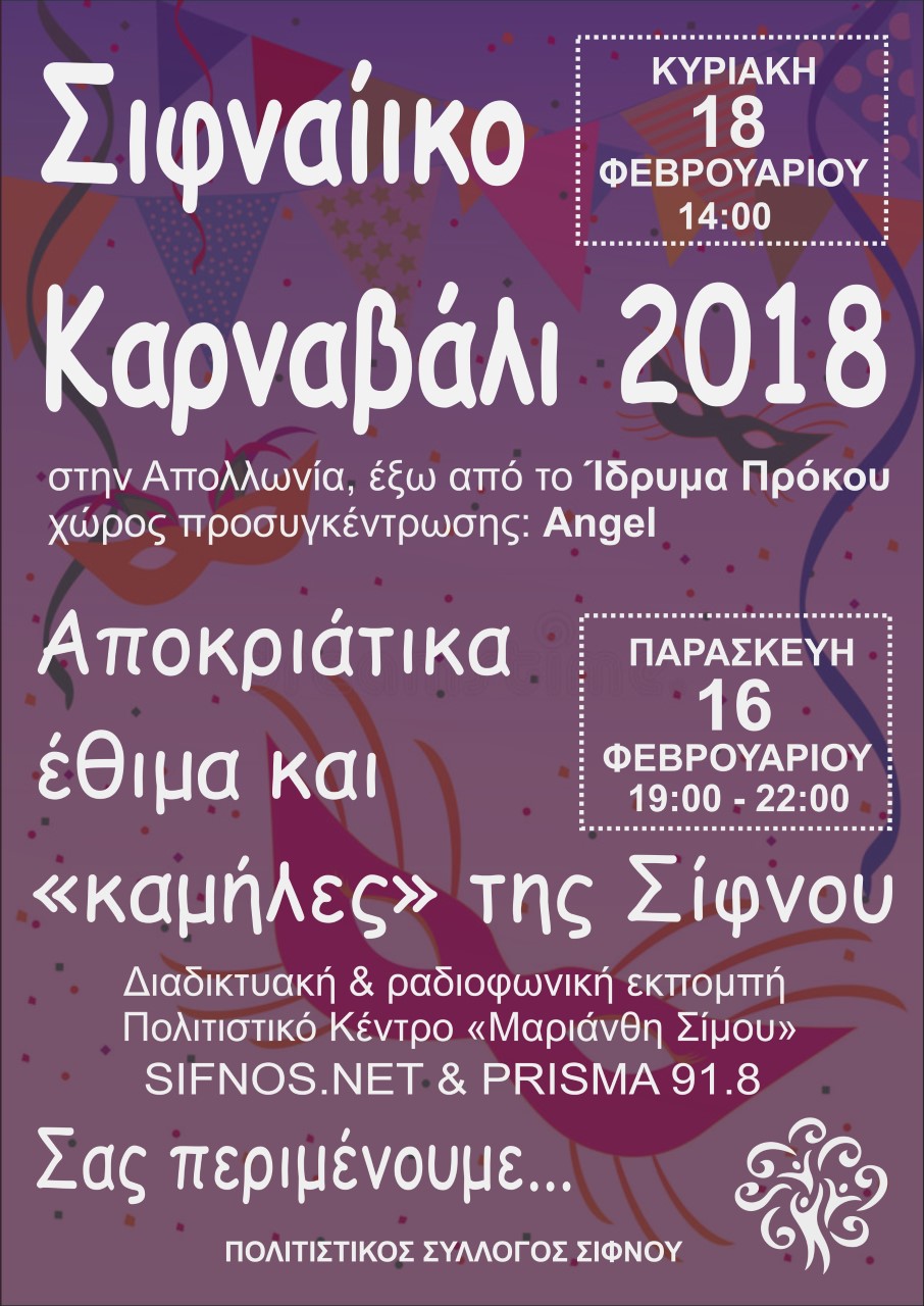 Οι Απόκριες φτάνουν στο τέλος τους και ο Πολιτιστικός Σύλλογος σας περιμένει και αυτή τη χρονιά στο σιφναίικο καρναβάλι.