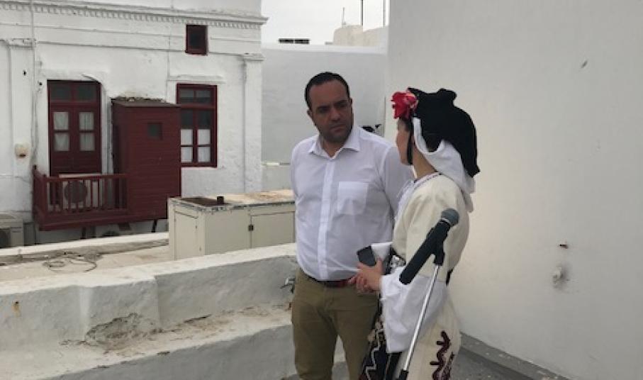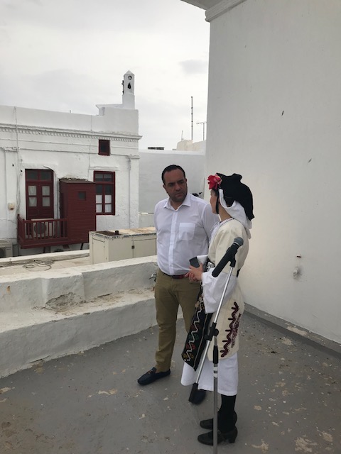 Ο Δήμαρχος Μυκόνου κ. Κωνσταντίνος Κουκάς, υποδέχτηκε το φεστιβάλ απευθύνοντας ένα σύντομο χαιρετισμό και εξαίροντας την τεράστια σημασία τέτοιων πρωτοβουλιών, που στόχο έχουν τη διάσωση και διάδοση της πολιτιστικής παράδοσης του τόπου.