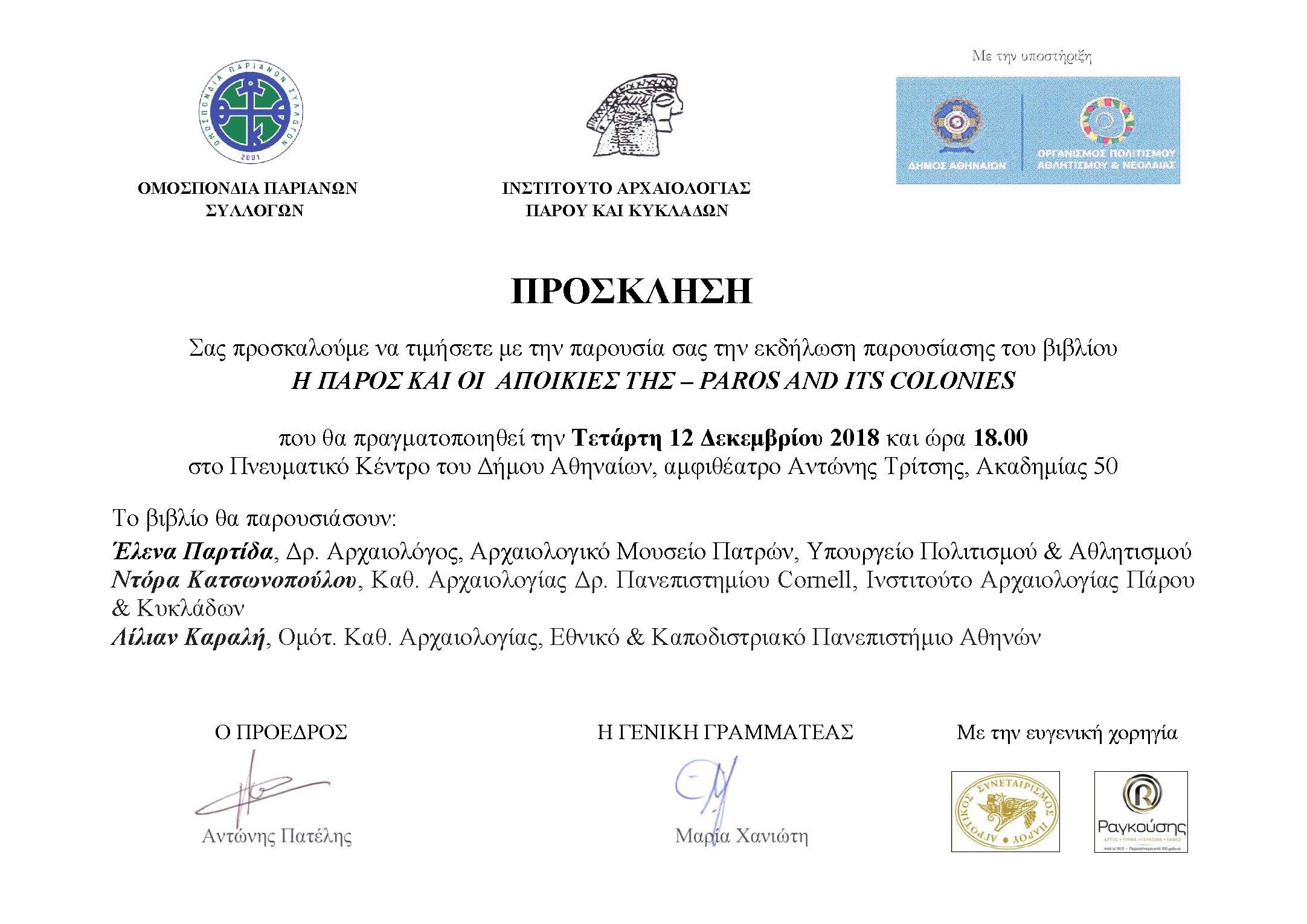 Η ΟΠΑΣ σε συνεργασία με το Ινστιτούτο Αρχαιολογίας Πάρου & Κυκλάδων (ΙΑΠΚ) και υπό την αιγίδα της Περιφέρειας Νοτίου Αιγαίου έχει την χαρά να παρουσιάσει ένα νέο σημαντικό βιβλίο για την Πάρο που αφορά στις αποικιακές δραστηριότητες των αρχαίων Παρίων, οι οποίοι ταξίδεψαν και ίδρυσαν αποικίες σε κομβικά σημεία του αρχαίου κόσμου από την Προποντίδα και το Βόρειο Αιγαίο στα ανατολικά μέχρι τις ακτές της Αδριατικής στην Δύση. Ο τόμος, με τον ειδικότερο τίτλο Η Πάρος και οι Αποικίες της και την επιστημονική επιμέλεια της Πρόεδρου του ΙΑΠΚ Ντόρας Κατσωνοπούλου, είναι ο 4ος στη σειρά εκδόσεων του ΙΑΠΚ με τον διεθνή τίτλο Paros και περιλαμβάνει συνολικά 26 επιστημονικά άρθρα που κατανέμονται σε δύο μέρη. Το Μέρος I με τον τίτλο Πάρος, η μητρόπολις, περιλαμβάνει 8 επιστημονικές εργασίες αναφορικά με την αποικιακή δραστηριότητα των Παρίων αλλά και με τα αρχαιολογικά ευρήματα της τελευταίας 30ετίας στην Πάρο που αναδεικνύουν τον πλούτο και την ισχυρή οργάνωση της πόλης της Πάρου ήδη από τον 8ο αιώνα π.Χ. Η εικόνα αυτή πρώιμης ακμής της Πάρου ενισχύεται και από πρόσφατα ευρήματα ανασκαφών στην Νότια Ιταλία τα οποία συνηγορούν στην παρουσία σε αυτή την περιοχή μεγάλης ελληνικής κοινότητας αγγειοπλαστών και αγγειογράφων από το Αιγαίο Πέλαγος και ειδικότερα από την Πάρο καθώς επίσης και από νέα γλυπτά σε παριανό μάρμαρο που βρέθηκαν στην Ιταλία και στην βόρεια Πελοπόννησο.