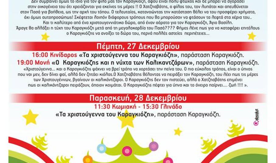 Το Νομικό Πρόσωπο Πολιτισμού Αθλητισμού Περιβάλλοντος Παιδείας Πρόνοιας και Αλληλεγγύης του Δήμου Νάξου και Μικρών Κυκλάδων ενημερώνει ότι η παράσταση "Τα χριστούγεννα του Καραγκιόζη" στη Χώρα της Νάξου αντί αύριο το απόγευμα στις 19:00 θα πραγματοποιηθεί σήμερα το μεσημέρι στις 14:00.