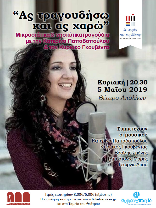 Συναυλία με μικρασιάτικα και νησιώτικα τραγούδια, διοργανώνει ο Λαογραφικός Χορευτικός Όμιλος "Σοφία της Παράδοσης", στο πλαίσιο του 2ου Φεστιβάλ Παραδοσιακών Χορών "Συριανοπατώ".