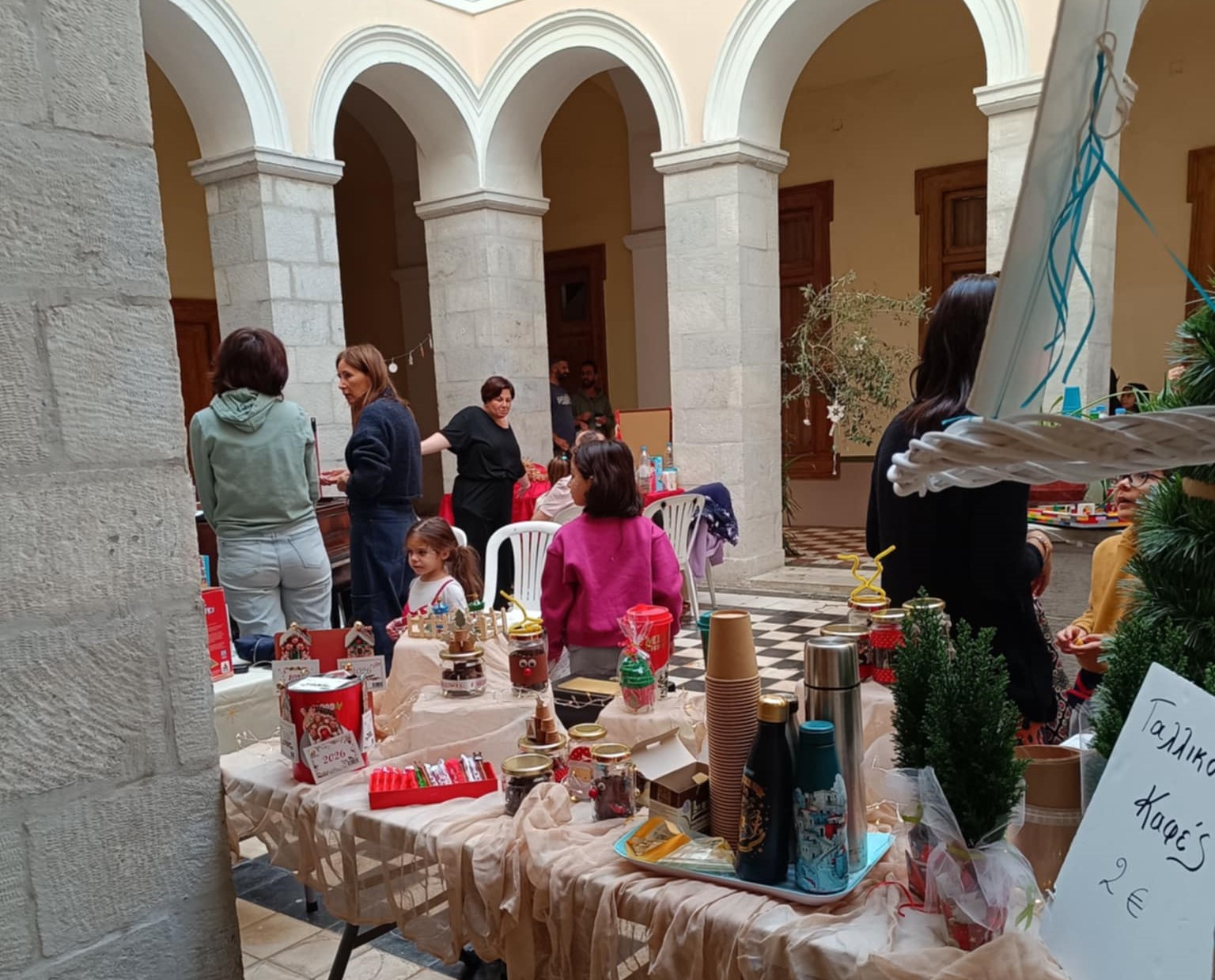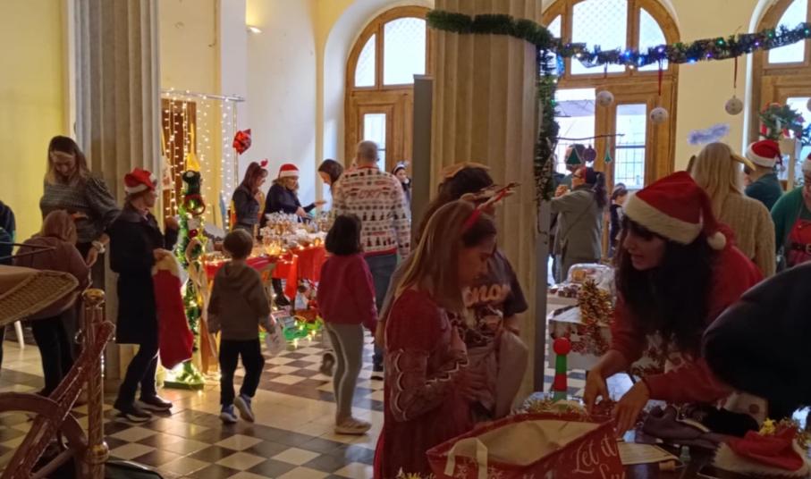 Και μπορεί οι άσχημες καιρικές συνθήκες, με τις βροχοπτώσεις που επικράτησαν τις προηγούμενες ημέρες, να χάλασε και να ανέτρεψε τον πρωταρχικό σχεδιασμό για τη δημιουργία ενός μεγάλου χριστουγεννιάτικου χωριού γύρω από το στολισμένο δέντρο της πλατείας Μιαούλη, εντούτοις η διοργάνωση στέφθηκε με απόλυτη επιτυχία, μετατρέποντας τον ισόγειο χώρο του δημαρχιακού μεγάρου σε ένα μεγάλο bazaar με πρωτότυπες δημιουργίες και πολύ παιχνίδι.